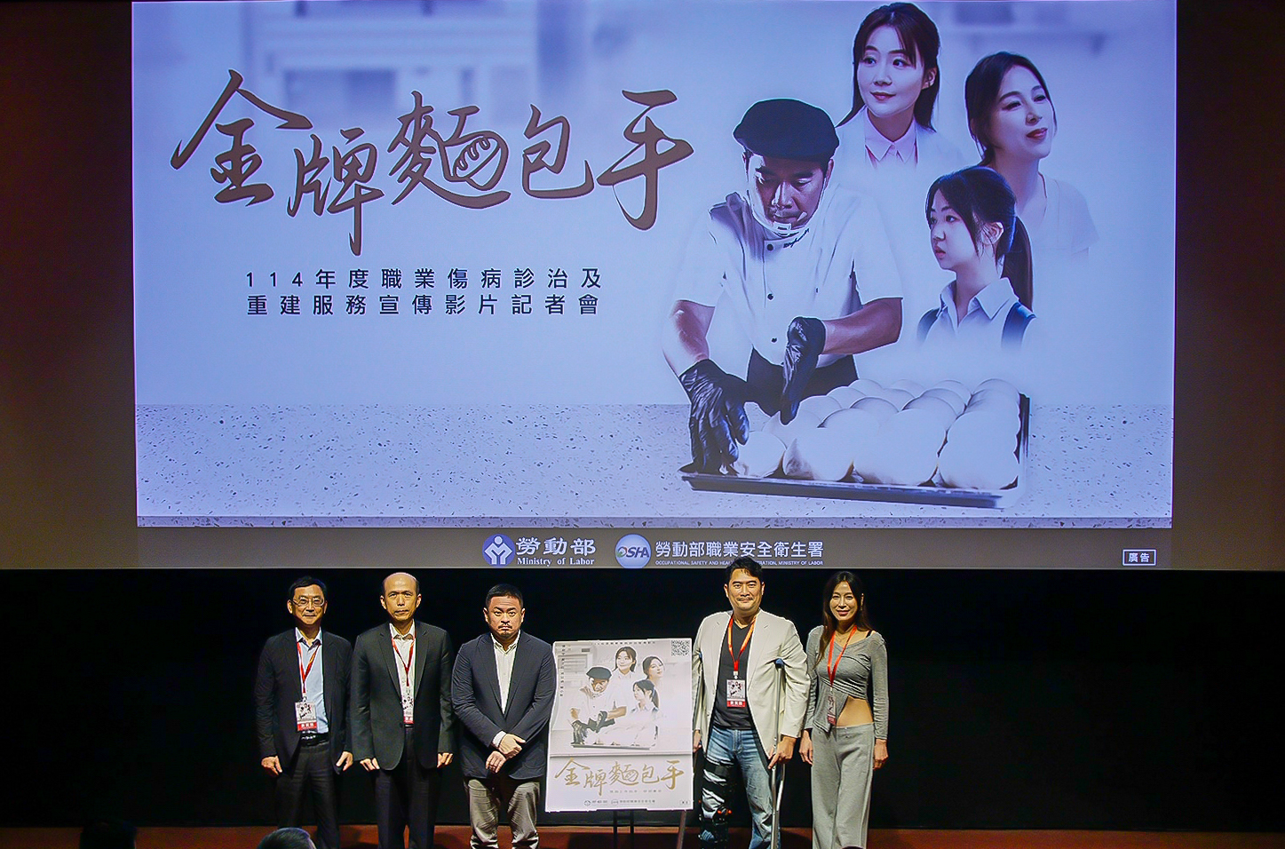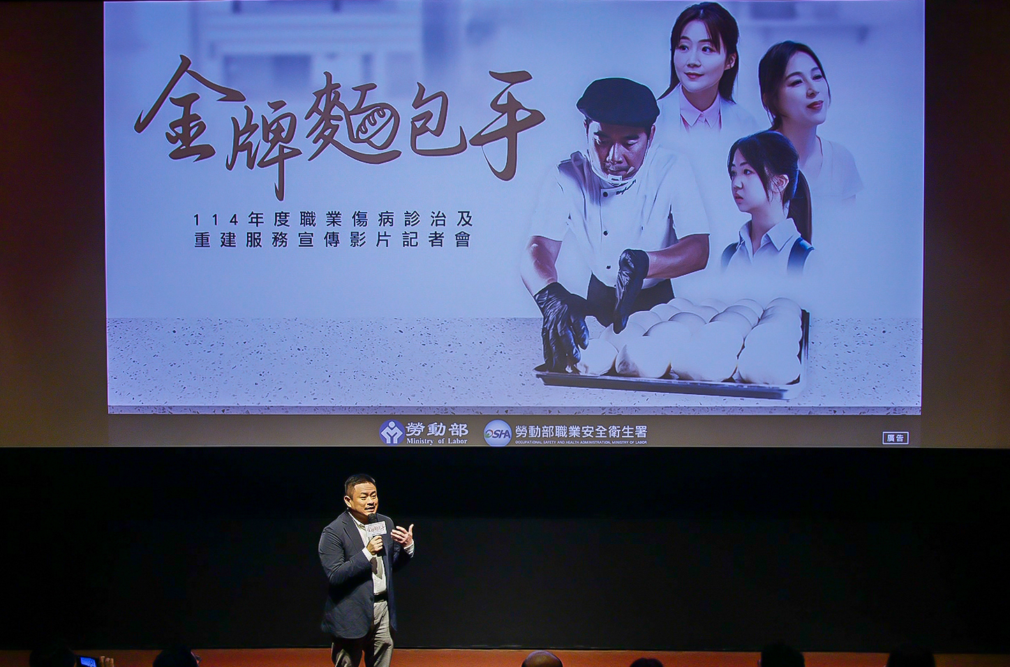 《金牌麵包手》影片,以一名擁有二十多年資歷的麵包師傅為主角,描繪雙手創造烘焙界金牌成就的過程,因長期工作中反覆重複的動作,導致雙手出現麻木、痠痛及無力等症狀,卻誤以為只是一般工作疲勞所致,忽略可能罹患職業性腕隧道症候群的風險。藉由劇情轉折,傳達當勞工自覺疑似職業病時,可至勞動部認可職業傷病診治專責醫院尋求職業病諮詢、評估、診治及復工等相關協助,藉此帶出「正視職業病,及早就醫」之意象,期能透過戲劇詮釋,提升社會大眾對勞工健康議題的關注。
