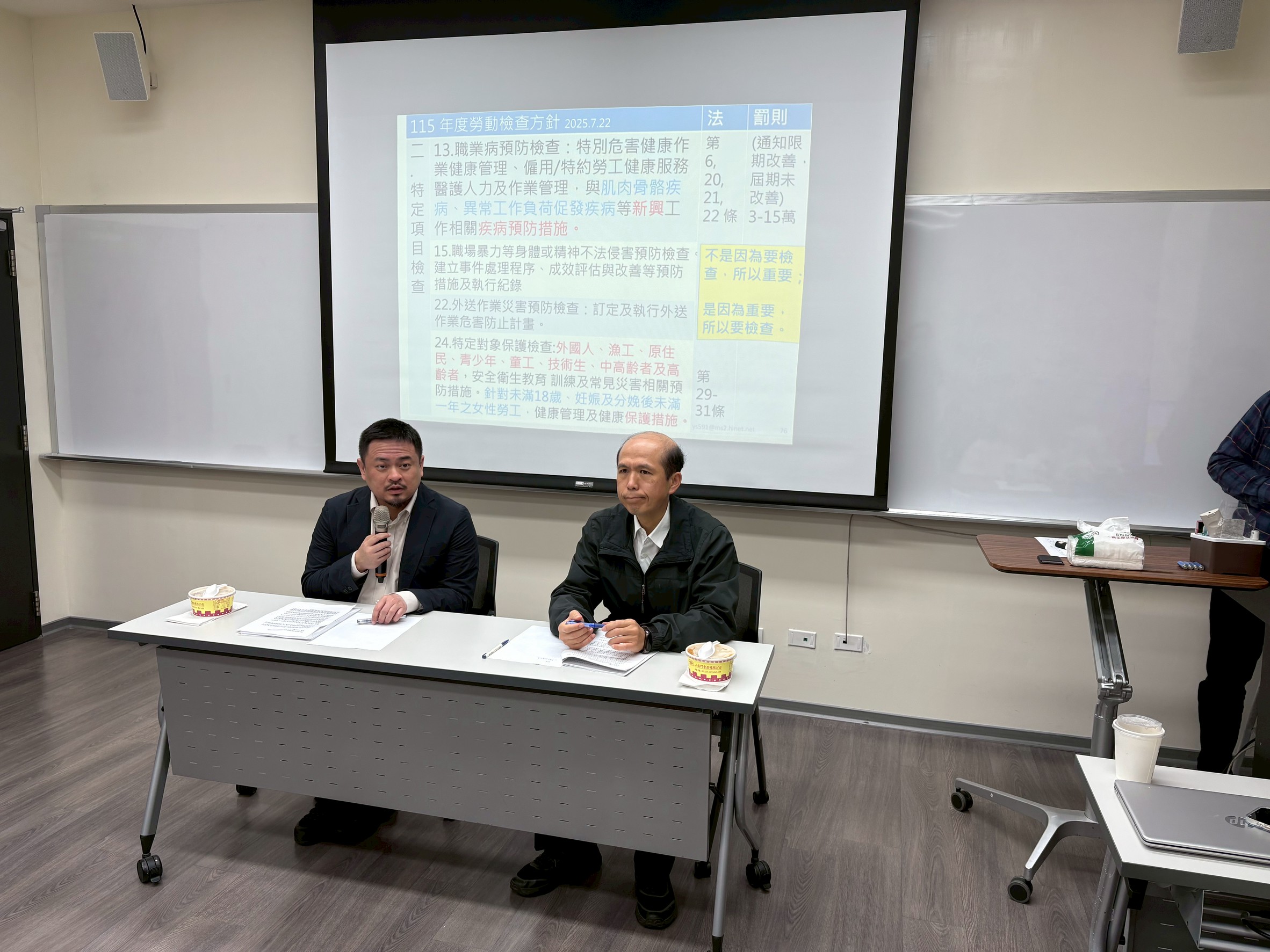 洪部長表示,勞動檢查是保障勞工安全健康及維護勞動權益最關鍵的工作。勞動檢查員不分平假日均須深入高風險廠場、營造工地執行檢查,並於職業災害發生時第一時間趕赴現場,工作負荷與心理壓力皆相當沉重。對於同仁長期在高風險環境中執行公務,甚至需面對外界誤解與壓力,勞動部非常重視,並持續從制度面強化對第一線人員的支持。