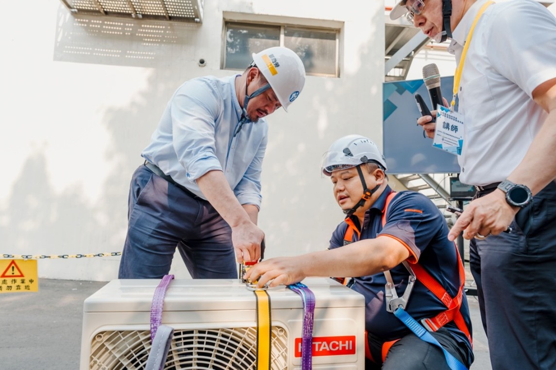 隨著天氣逐漸轉熱,冷氣安裝與維修工作也即將進入一年中最繁忙的時節。勞動部已於114年12月發布《冷氣安裝維修作業安全指引》,整理實際職災案例與現場經驗,提供清楚、可操作的安全施工流程與防護重點,讓業界好用、用得上。為了在旺季來臨前,提前把「安全」這件事準備好,勞動部職業安全衛生署昨(14)日特別攜手中華民國電器商業同業公會全國聯合會、新北市電器商業同業公會,在「日立冷氣研習中心」舉辦「冷氣安裝維修作業安全教育訓練暨觀摩示範」活動,透過實地教學與經驗交流,協助第一線作業人員把安全真正做到位。勞動部洪申翰部長也親自到場,與業者、師傅們一起觀摩施工演練、聽取實務經驗。