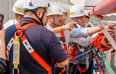 洪部長在活動中,實地觀摩符合「冷氣安裝維修作業安全指引」的完整施工流程,包括穩固的錨拴系統、防墜設施的正確架設,以及感電風險的預防作為。他也特別走進學員之中,與第一線從業人員面對面交流,傾聽大家對於指引的回饋與建議,也期盼透過今天的訓練與示範課程,幫助雇主建立正確觀念,提醒每一位作業夥伴,在每一次安裝、每一次維修時,都能把安全放在第一位,更希望透過與公會的合作,讓這份作業規範真正落實到每一處工地、每一棟建築,讓大家都能「安心工作、平安回家」。