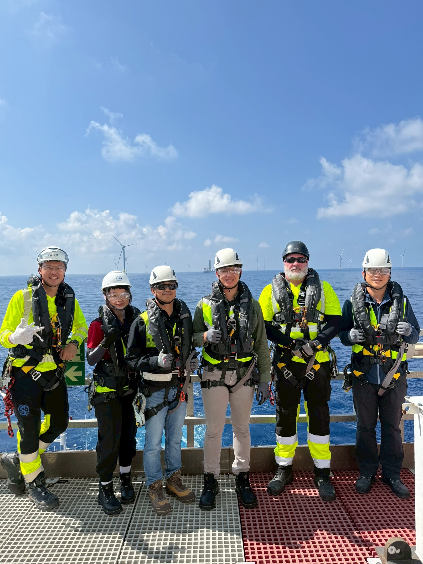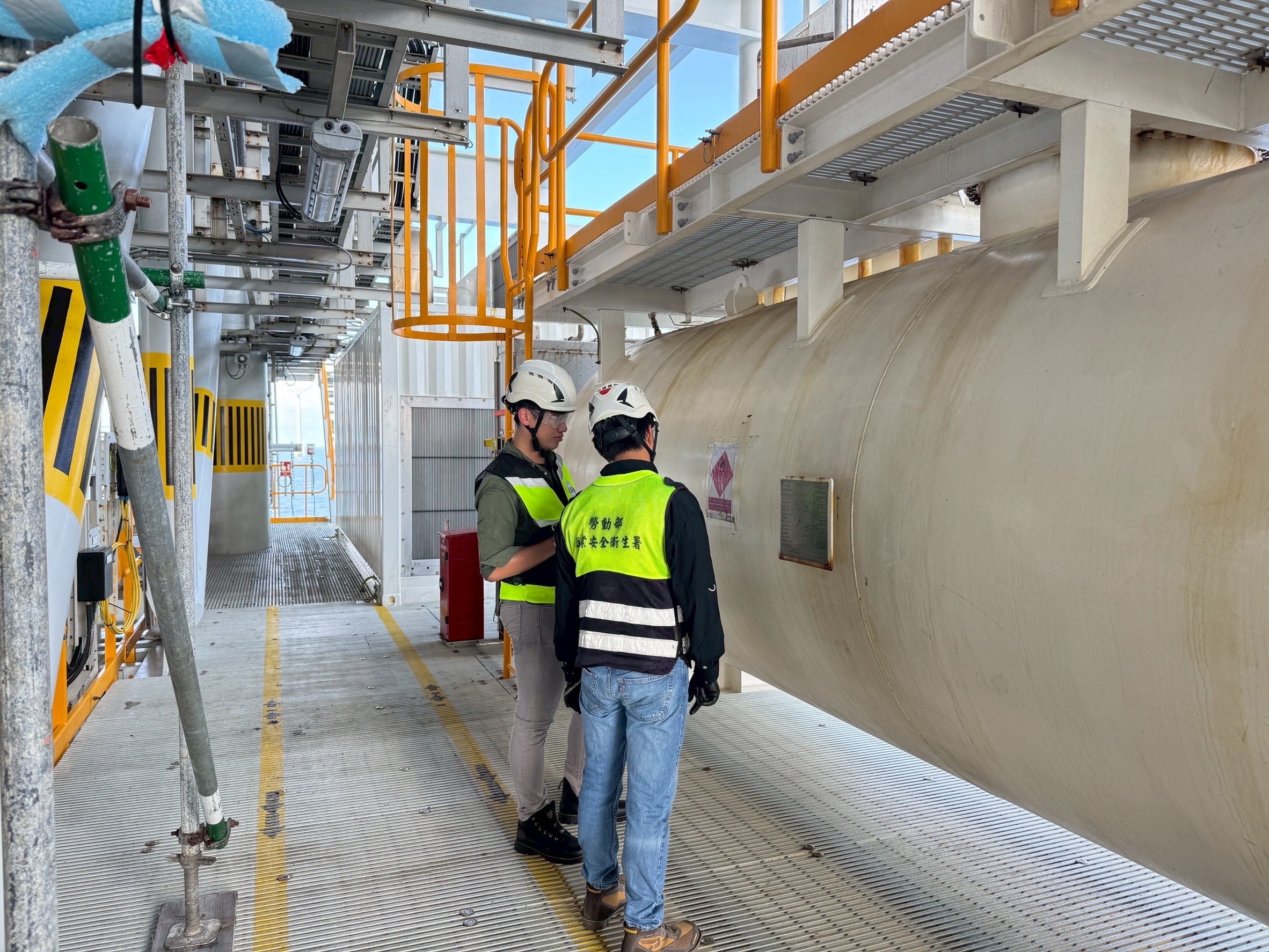 職安署於本(114)年10月2日派員登船前往海龍離岸風場施工區域實施檢查,就變電站及風機施工現況檢視安全衛生設施及管理執行情形,督促離岸風場落實安全管理。
